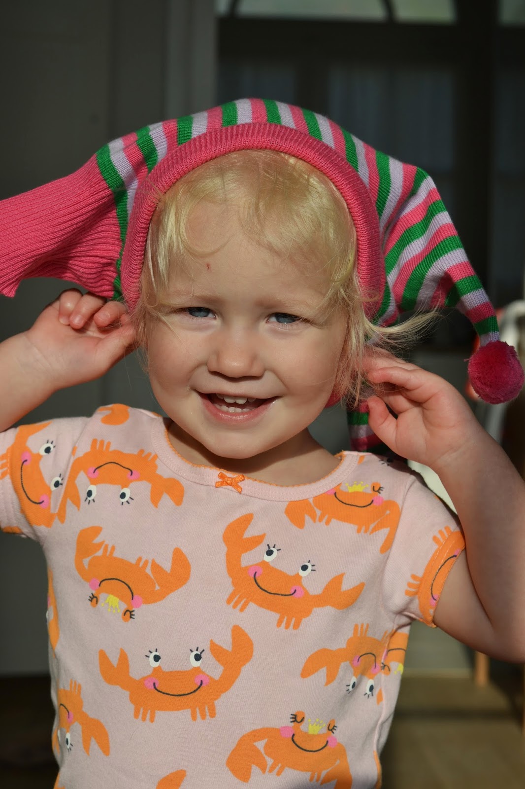 Then it was hat time! Lily climbed into the wardrobe and pulled them all out. She picked out hats and had me put them on sissy. She also put a few on herself.
